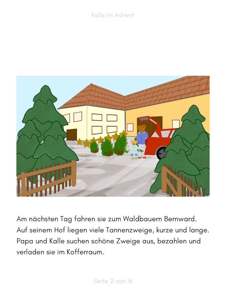 Kurz vor Weihnachten fahren Kalle und sein Papa zum Waldbauern Bernward, um einen Weihnachtsbaum zu besorgen.