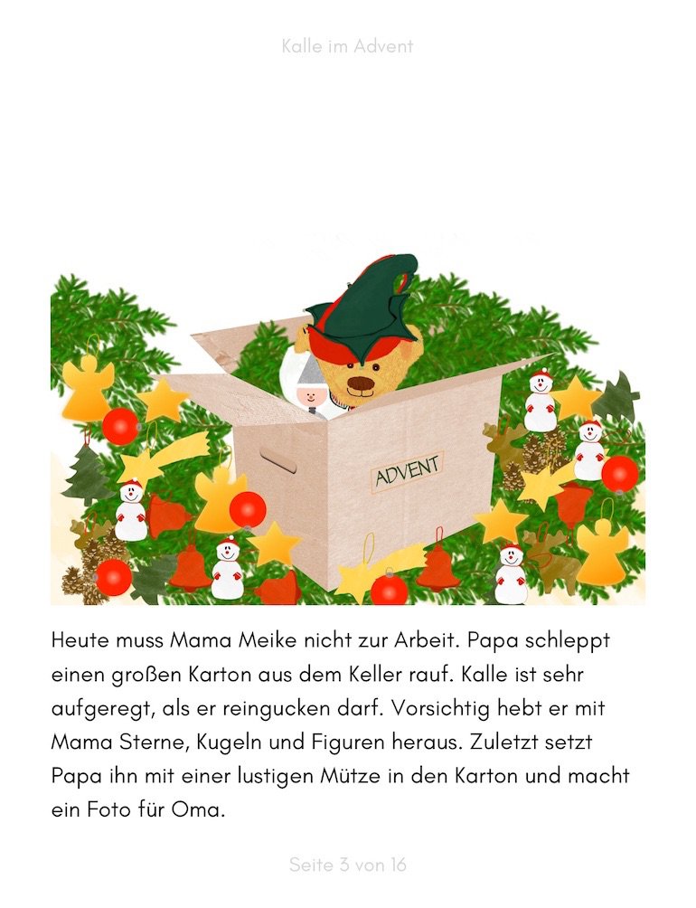 Weihnachten steht kurz vor der Tür und Kalle möchte sein Zimmer schmücken. Was er wohl alles in der Kiste mit dem Schmuck findet?